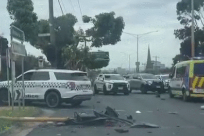Man shot by police outside Victorian school after stolen car crashes into school bus in Geelong