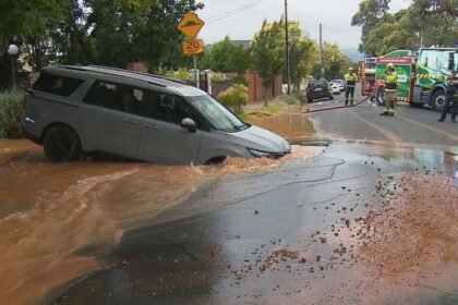 Couple get hire car stuck in sinkhole on way to airport in Adelaide