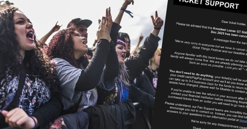 Knocked Loose also provided a statement which read, “We’re very sorry to everyone but we have to cancel our Australia trip, including the Good Things Festival and our headline shows around it.