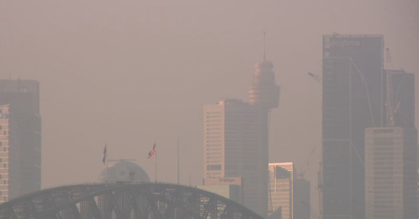 The smoke settled on the city’s skyline and has impacted air quality in the NSW capital.