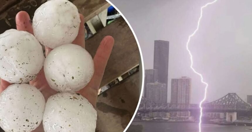 Giant golf-ball sized hail measuring 5cm in diameter reportedly fell across multiple regions in the state, while some residents in the Southern Downs documented up to 8-9cm hailstones.