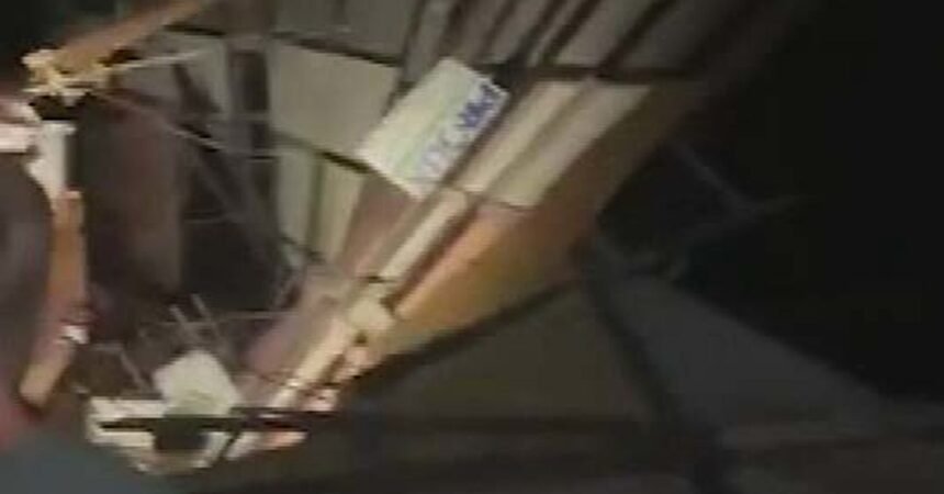 The building was flattened with people still inside but somehow nobody was seriously injured.