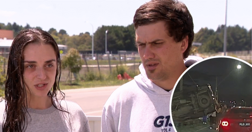 Samantha Petrevski and Daniel Sperandio were driving on Donnybrook Road in Donnybrook just after 9pm yesterday when they came across a car that had mounted a road barrier and rolled.