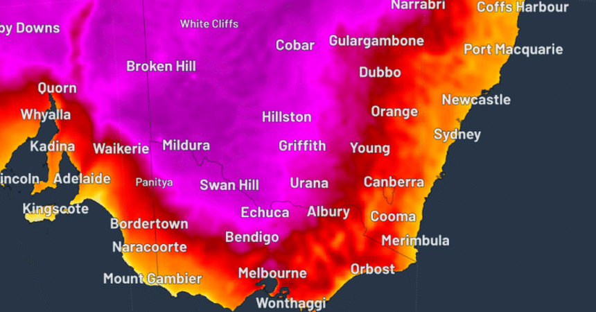 Oodnadatta in South Australia’s north east pastoral forecast district could see a maximum temperature of 47 degrees, while temperatures in Mildura in Victoria’s north-west corner could reach a high of 46 degrees.