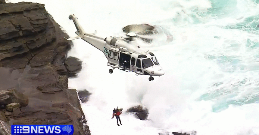 The survivor was stranded on rocks, bleeding but incredibly lucky to be alive.