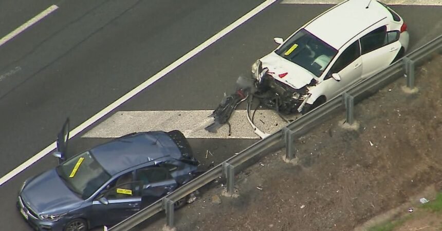 The driver of the white Kia, a woman in her 30s, is cooperating with police. (Nine)