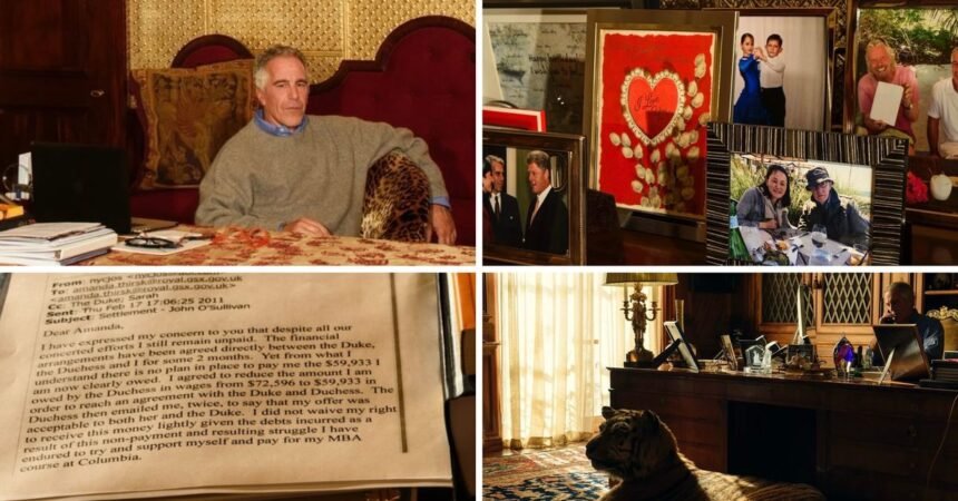 One of the images contains a printed email on his desk of an exchange between Epstein and the UK royal government office concerning payment from a duke and duchess.