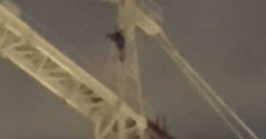 “At one point, he went from the inside of the crane to the outside of the crane and was looking down,” witness Mikaela Mudie told 9News.