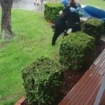 “At one point, he went from the inside of the crane to the outside of the crane and was looking down,” witness Mikaela Mudie told 9News.