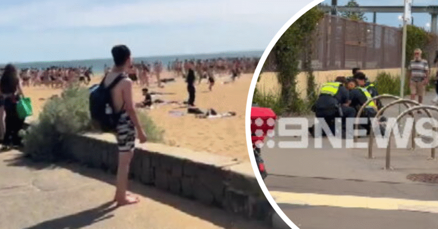Vision has emerged of dozens of youths shoving each other and throwing punches and kicks at Mordialloc Beach around 8.30pm yesterday.