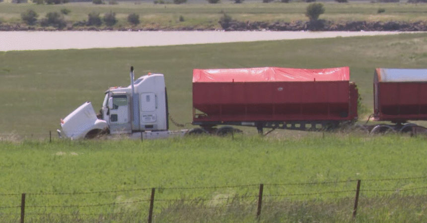 The car was t-boned by the truck and spun on its wheels multiple times before coming to rest on its passenger side, according to police.